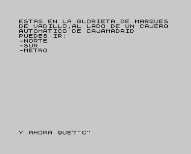 - "REGISTRAR": pones patas arriba la localidad actual en busca de pistas u objetos ocultos que no resultasen evidentes con la simple descripción que aparece al "Mirar" un sitio.